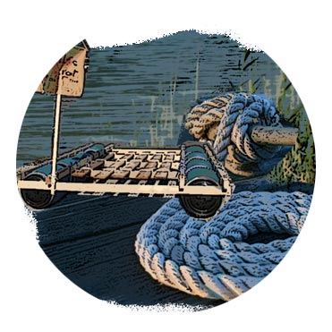 Mit Holz und Tauen ausgestattet kann das Abenteuer beginnen. Bauen Sie ihr eigenes Floß!